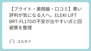 家電 【ブライトの美顔器口コミ】悪い評判が気になる人へ。ELEKI LIFT BRT-FL170の不安が出やすい点と回避策を整理 ブライト美顔器の口コミが気になり購入を迷う人へ。ELEKI LIFT BRT-FL170の特徴、評価が割れやすい点、向き不向きと使い方の回避策を整理します。 2025.12.23 家電